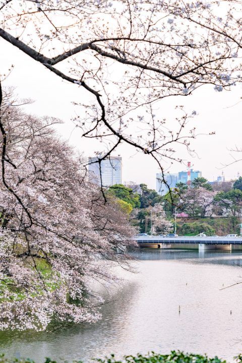 One of Tokyo's most popular cherry-blossom viewing spots along the moat of the Imperial Palace